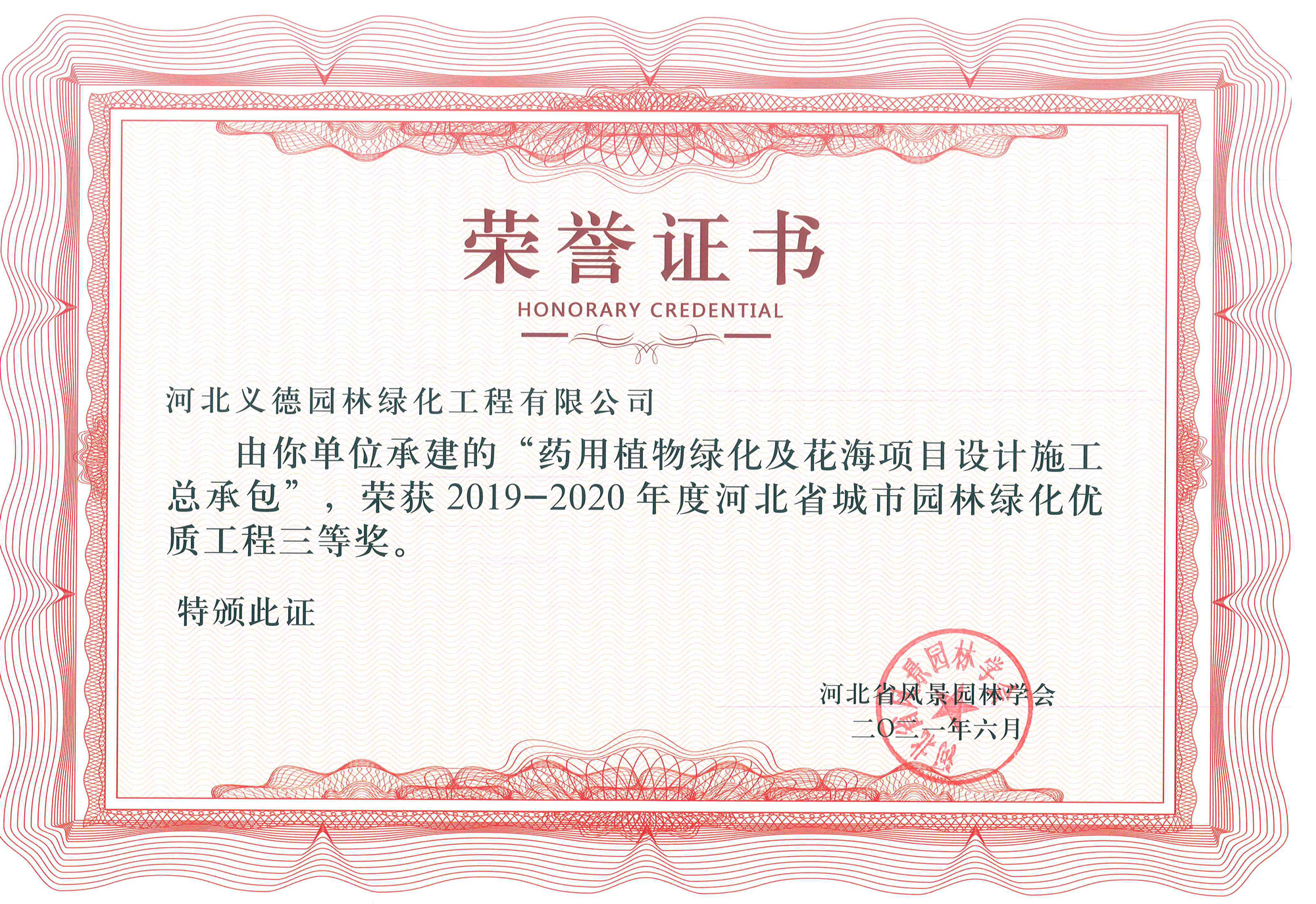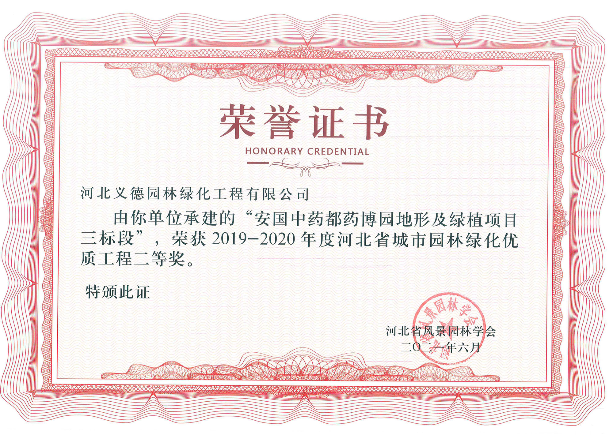 工程業(yè)績榮獲有2017-2018年度河北省城市園林綠化優(yōu)質工程二等獎兩個;2019-2020年度河北省城市園林綠化優(yōu)質工程二等獎兩個、三等獎兩個;2018至2020年保定市燕趙杯優(yōu)質工程五個;2020年度石家莊市優(yōu)質工程一個。